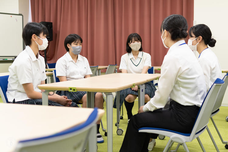 そんななか、併設大学(文京学院大学)の保健医療技術学部看護学科で保健師をめざす学生さんが実習で来校しています。せっかくの機会なので、看護・医療系の進路を考えている生徒と学生さんとの懇談会を実施しました。病院実習の様子、大学での学び、併設大学と他校との違い、そしてもちろん大学合格を勝ち取るための受験対策など、多岐にわたって有意義なお話を聞くことができました。